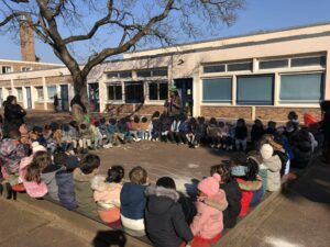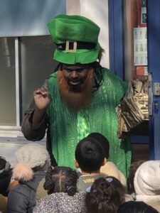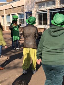 Au programme ? Des jeux autour des couleurs (et pas que le vert !), des chansons et l’accueil d’un gentil « leprechaun »…géant ! Le tout en anglais (pour les grands comme les petits) dans cette école engagée depuis plusieurs années dans le dispositif « Emile » visant un renforcement de l’éveil linguistique et de l’enseignement des langues.