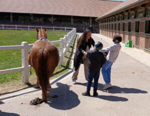 Tous les vendredis après-midi, les élèves, et les adultes qui les accompagnent, prennent la direction des Haras pour parfaire leur approche des chevaux.