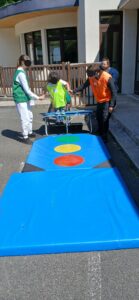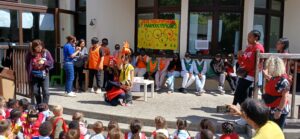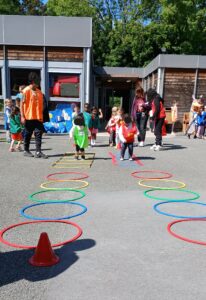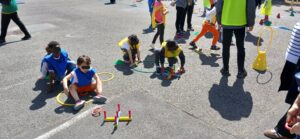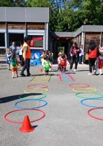 Tous les élèves de l’école maternelle du Moulin des Gibets, aidés par une classe de 3ème du collège des Chenevreux et leur professeur d’EPS mais aussi les élèves de l’IME Fernand Oury ont lancés leurs « jeux » sous le soleil et les sourires.