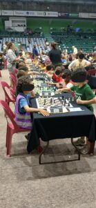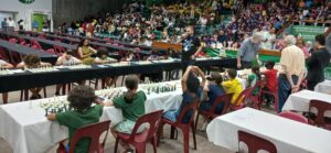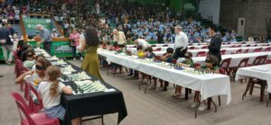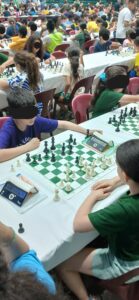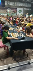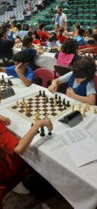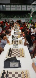 Toujours dans la grande salle de basket du Palais des sports de Nanterre, les classes de CE1 et de CE2 ayant pratiqué les échecs au cours de l’année, dans le cadre d’un projet partenarial, se sont retrouvées pour la 3ème édition du tournoi d’échecs de la ville, les CE1 le jeudi après-midi et les CE2, ainsi que quelques CM1, sur toute la journée du vendredi.