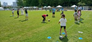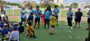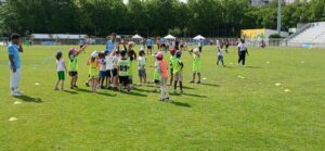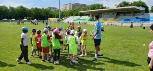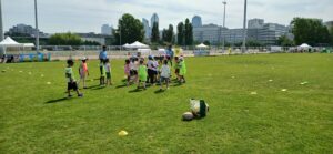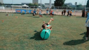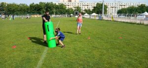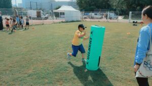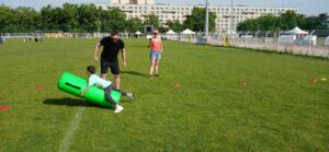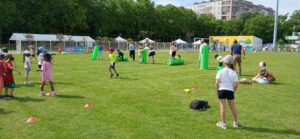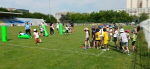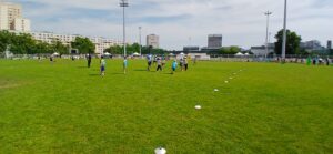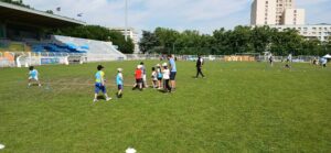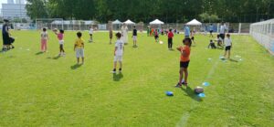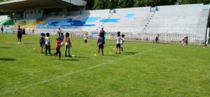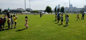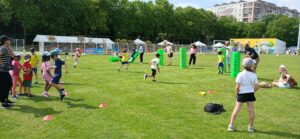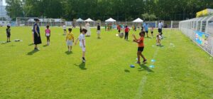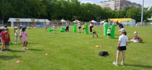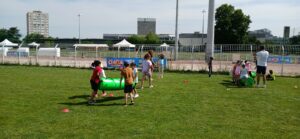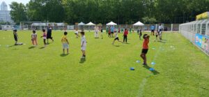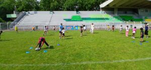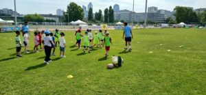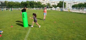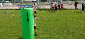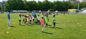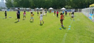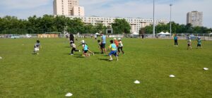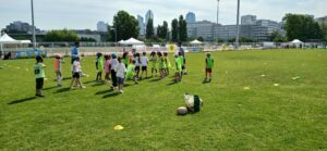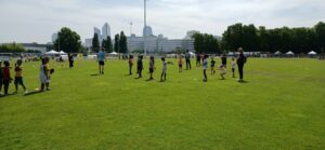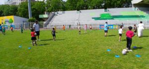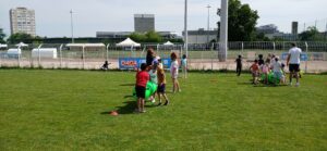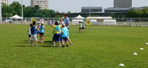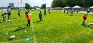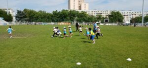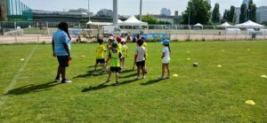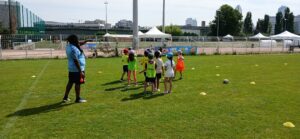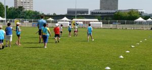 Pour clore les cycles dédiés à la découverte de la pratique du rugby « à toucher », menés avec l’appui des éducateurs sportifs du club du  » Racing Nanterre rugby » les classes de CP y ayant pris part se sont retrouvées sur la pelouse du stade Gabriel Péri pour une matinée sportive et ludique.