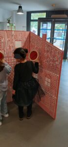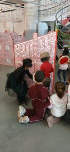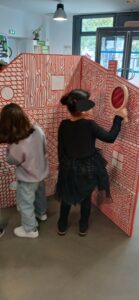 Dans un premier temps, les élèves, dotés de la dite loupe se sont glissés dans la peau de détectives et sont partis à la recherche d’objets et de personnages cachés dans une ville reconstituée…et ils leur a fallu un peu de patience pour retrouver : des saucisses, un petit singe endormi, un trio de souris, trois casques de cosmonaute…et bien des trésors encore !