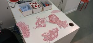 Dans un second temps, les élèves se sont glissés dans la peaux de l’illustrateur et, grâce à des lunettes rouges et des feutres bleus, ont à leur tour pu cacher des surprises dans des illustrations !